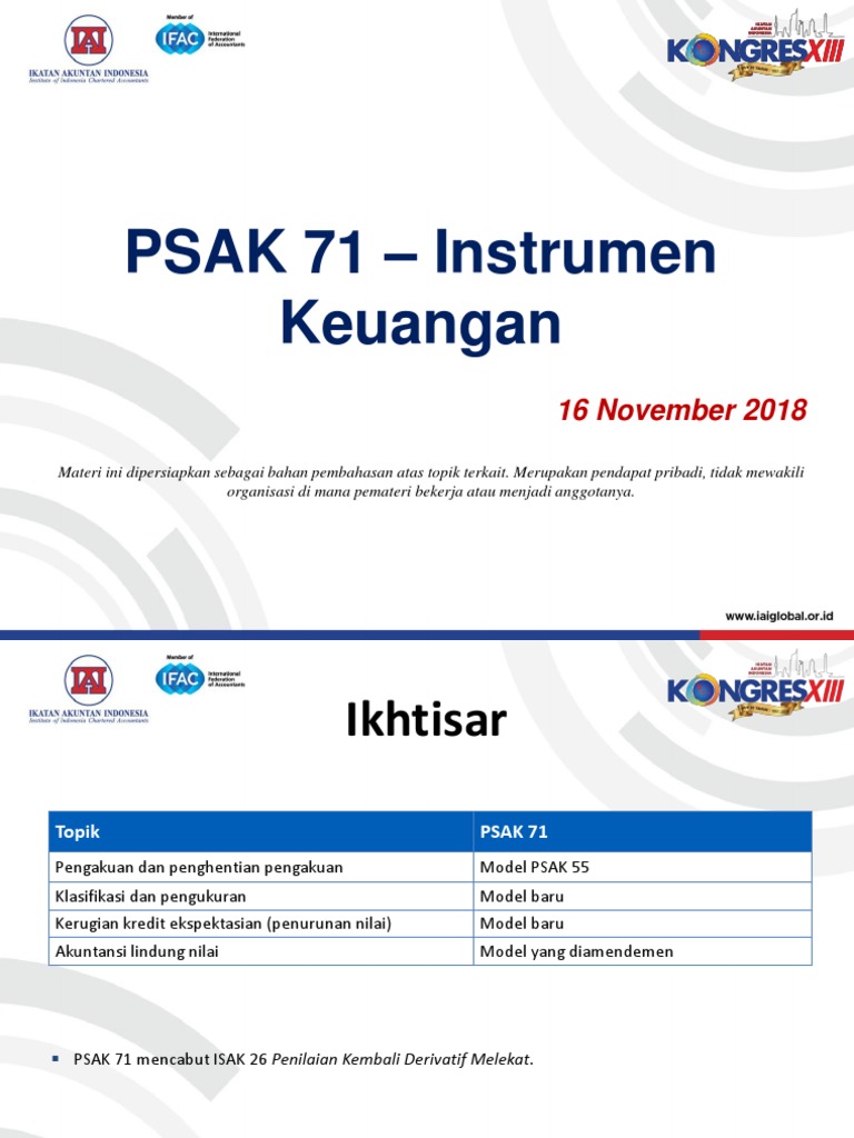 2 psak 71 instrumen keuangan direncanakan efektif 1 januari 2019 klasifikasi amortized cost dan fair value amortized cost jika memenuhi tes bisnis 5 pengakuan kerugian kredit ekspetasian ed psak 71 memperkenalkan metode kerugian kredit ekspektasian dalam mengukur kerugian instrumen. Самые новые твиты от psak 71 (@psak71): • penyampaian jasa advisory psak 71 kepada bank di asean,tiongkok, australia dan eropa. Hedge accounting should not be discontinued unless there's a change in the risk management objective.